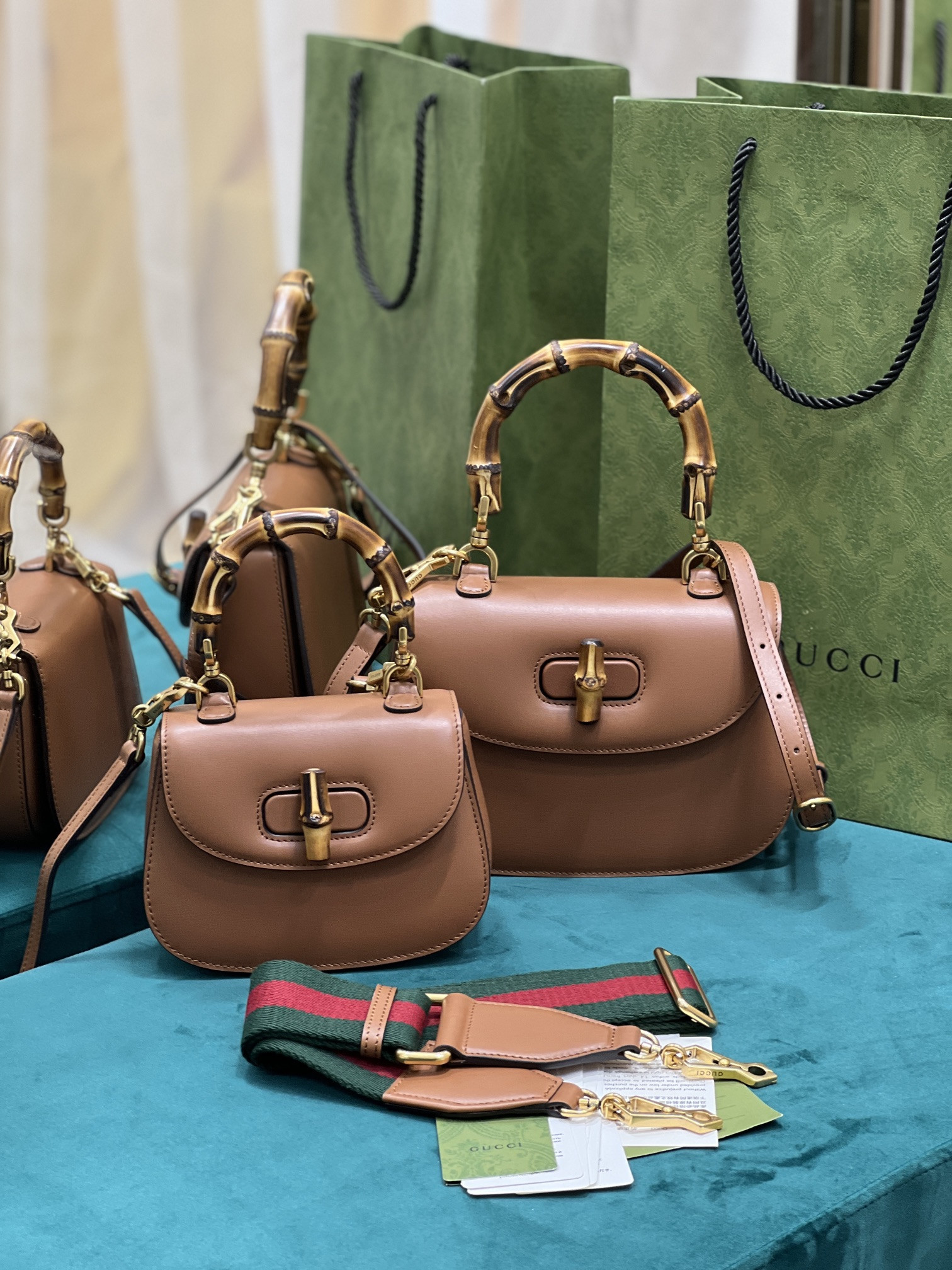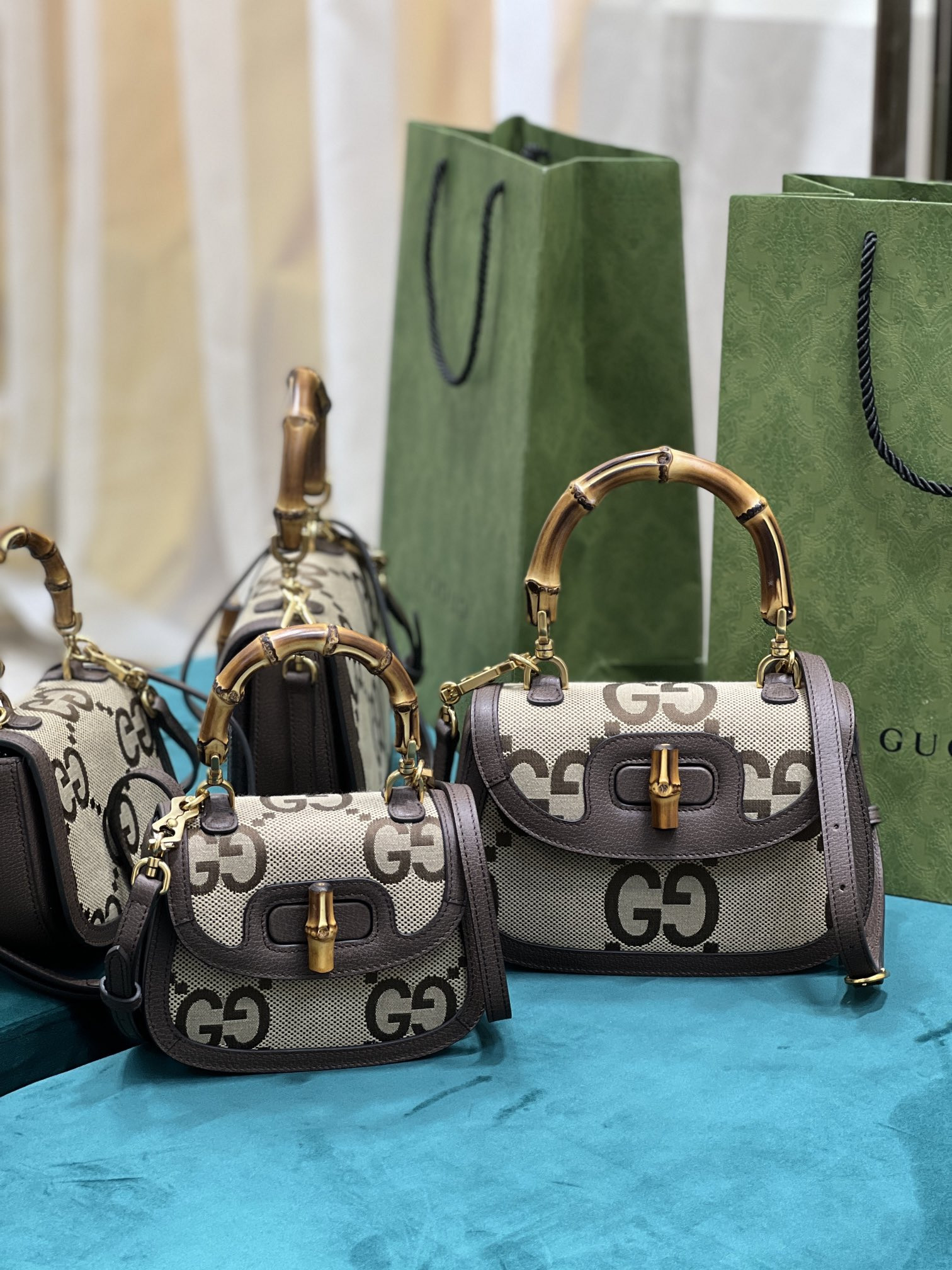 G*u*i top handle bag with bamboo-17*12*7.5&21*15*7cm